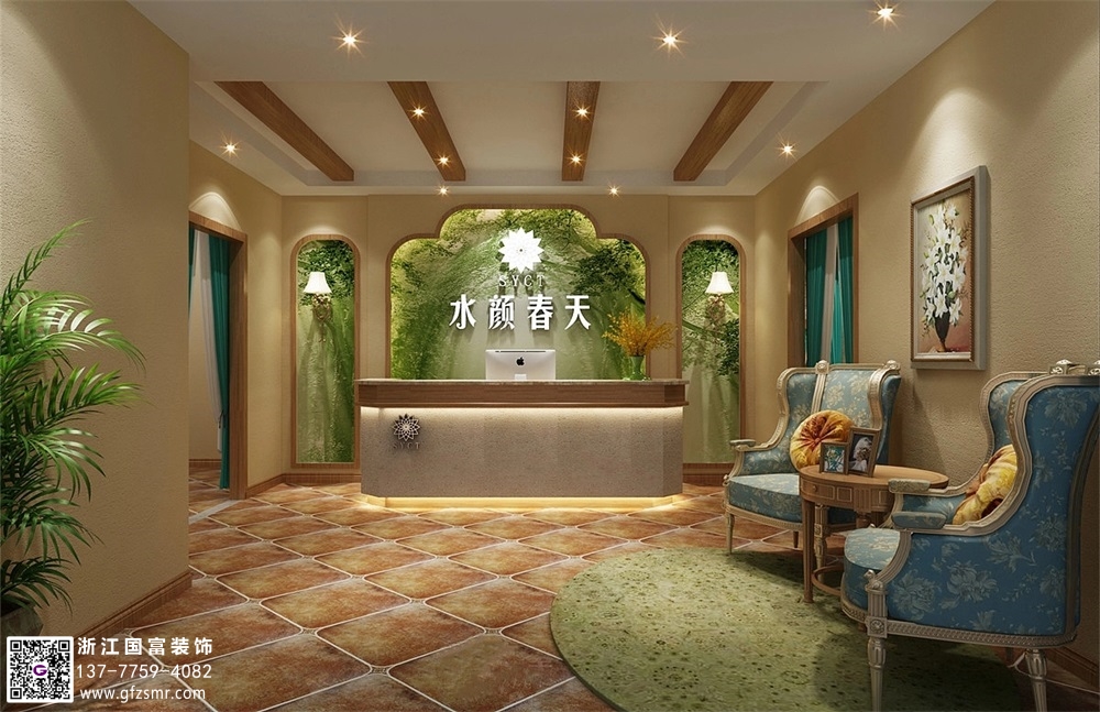 自然田園風(fēng)格美容院裝修設(shè)計(jì)案例效果圖
